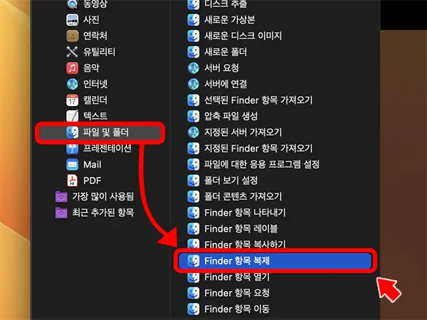 그런 이유로 위에서 "Finder 항목 복제하기"를 미리 추가한 것이다. 따라서 추가하지 않음을 선택하면 된다.